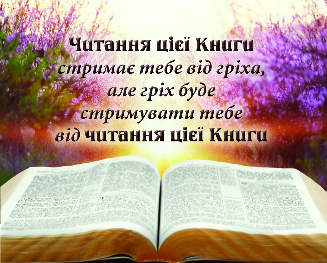 Маленька листівка-карточка. Загальний розмір 90х70мм. Українською мовою. Зворотня сторона без тексту, що є зручно, якщо потрібно підписати листівку. Папір 350, крейдований, ламінація. Напис: "Читання цієї Книги стримає тебе від гріха, але гріх буде стримувати тебе від читання цієї Книги".