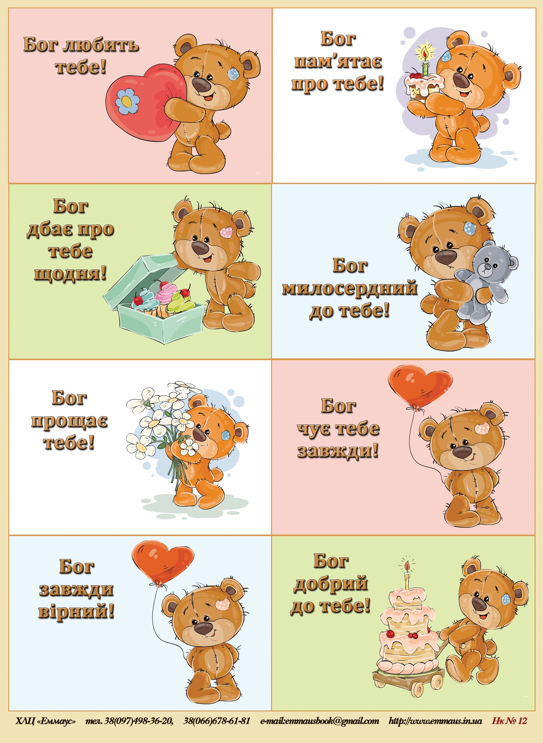 Product Summary Наліпка листова загальним розміром 200х150 мм. Текст українською мовою. Глянцева поверхня. Клейка основа. Гарні картинки в поєднанні з біблійними віршами та словами підбадьорення. Вірші взяті з Писання в перекладі І. Огієнка.