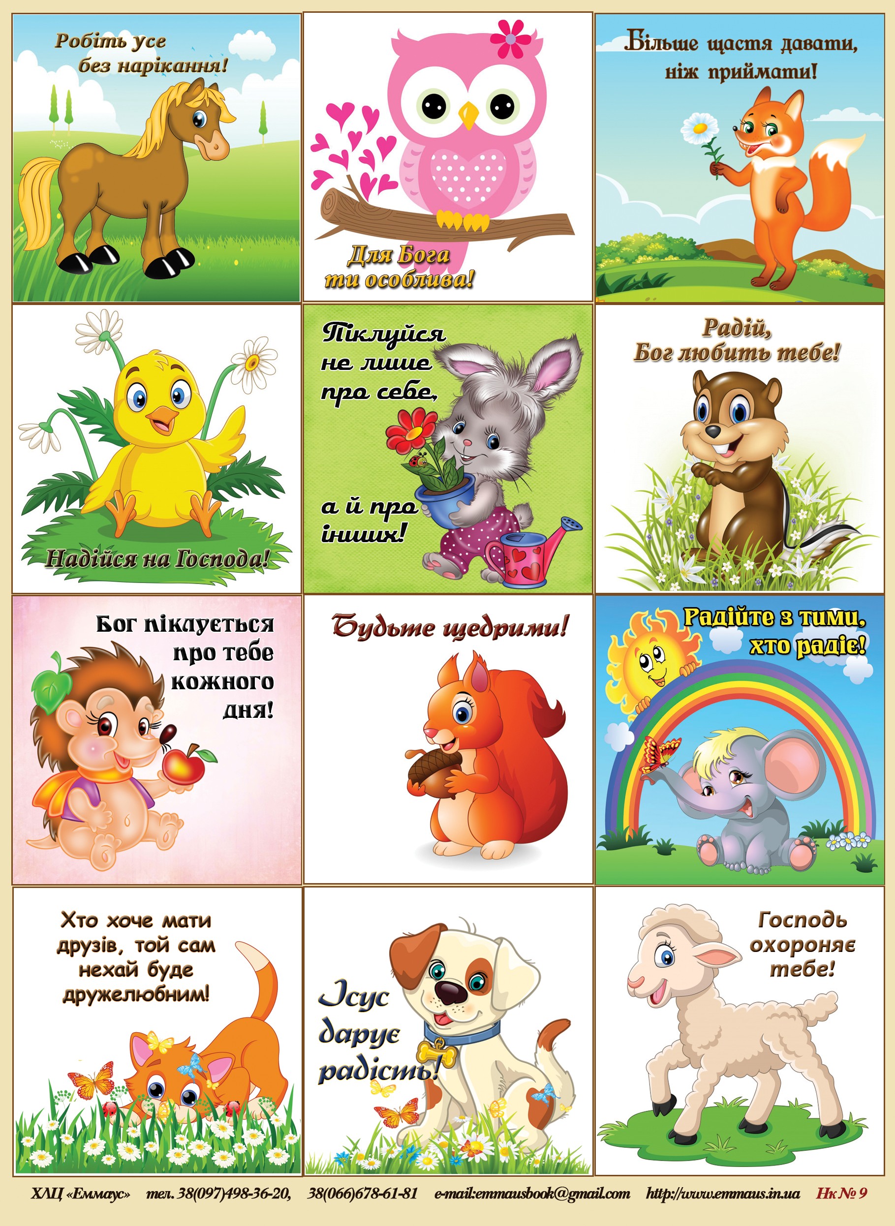 Наліпка листова загальним розміром 200х150 мм. Текст українською мовою. Глянцева поверхня. Клейка основа. Гарні картинки в поєднанні з біблійними віршами та словами підбадьорення. Вірші взяті з Писання в перекладі І. Огієнка.