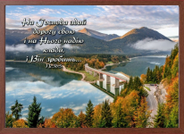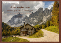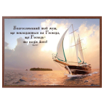 Картина формату А4 (32х22 см). Яскравий малюнок з біблійним текстом.  НА ГОСПОДА ЗДАЙ ДОРОГУ СВОЮ І НА НЬОГО НАДІЮ КЛАДИ, І ВІН ЗРОБИТЬ... Рамка може змінюватись, залежно від партії....