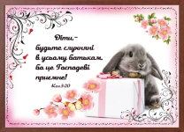 Картина формату А4 (32х22 см). Яскравий малюнок з біблійним текстом. ДІТИ, - БУДЬТЕ СЛУХНЯНІ В УСЬОМУ БАТЬКАМ, БО ЦЕ ГОСПОДЕВІ ПРИЄМНЕ!. Рамка може відрізнятися в залежності від партії. ...